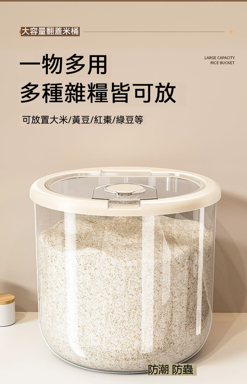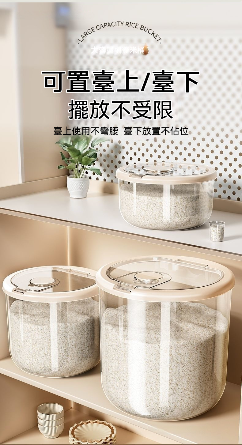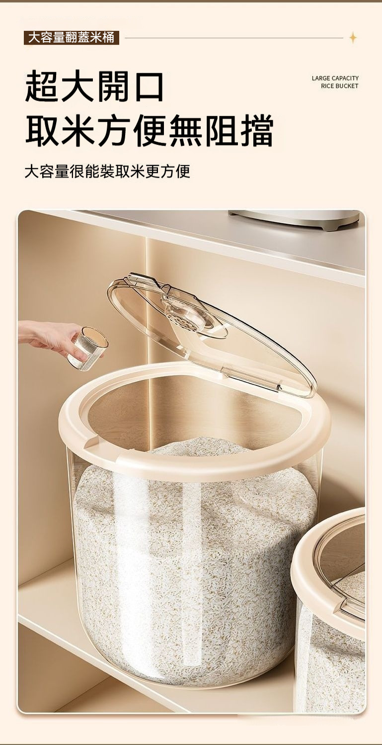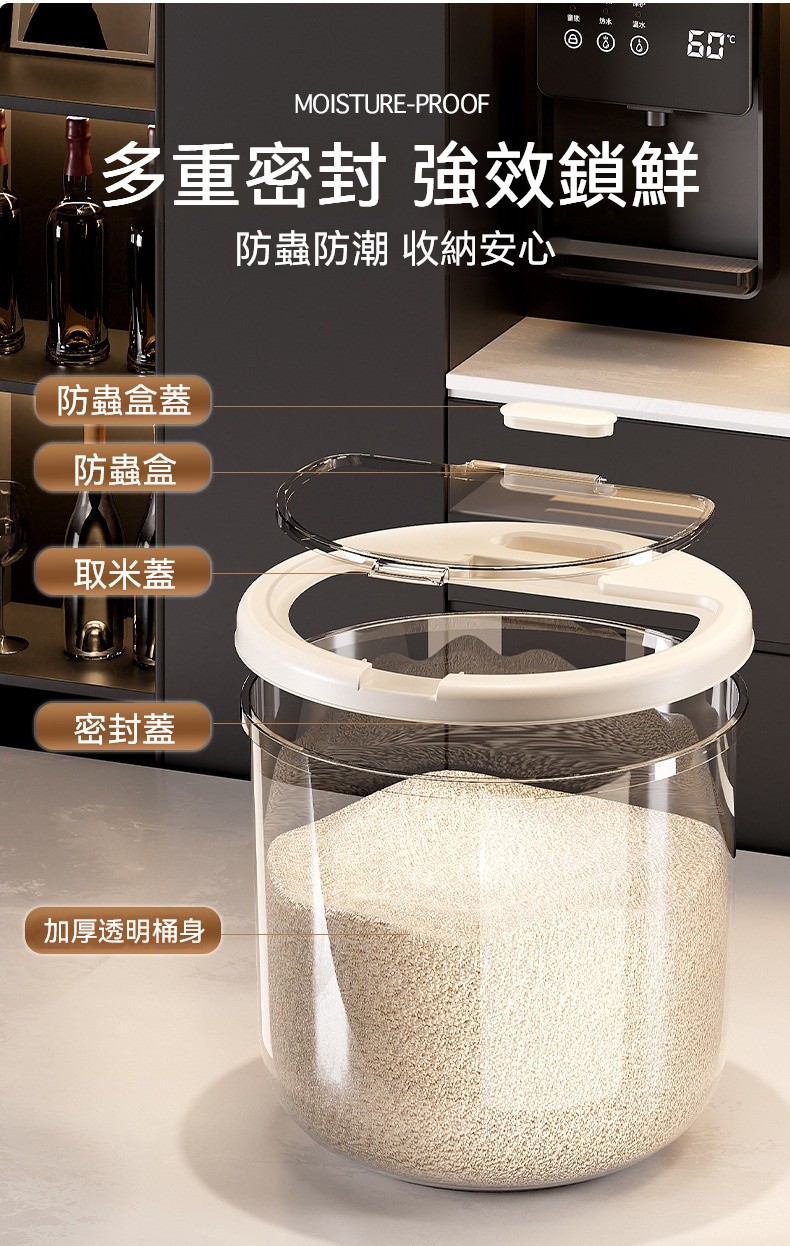 【防潮防蟲!密封米桶來了】 一按即開⚡️米麵豆子保鮮加倍! 台灣主婦激推 廚房收納必備 ✅食品級材質✅透明視窗✅計量出米